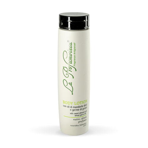 Die hohe Konzentration an Vitamin E, die im Weizenkeimöl enthalten ist, macht die La Profumoteca® Body Lotion nährend und schützend. Die exklusive Formel mit Süßmandelöl wirkt sanft und beruhigend und gibt selbst besonders trockener Haut Geschmeidigkeit und Glanz zurück. Der hohe Absorptionsgrad sorgt für ein fantastisches Gefühl von Weichheit, ohne zu fetten.